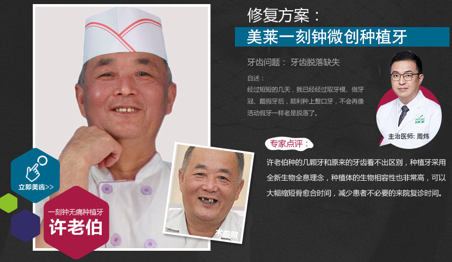 美莱采用“生物全息即刻种植技术”,选取欧美直供种植牙系统,做到快速无痛,有效解决了无牙颌患者的困扰;