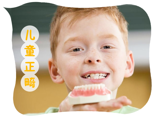 儿童正畸:儿童错颌畸形是指儿童生长发育过程中,由先天因素或后天因素导致的牙齿、颌骨、颅面的畸形。儿童错颌畸形可以通过正畸的方法进行矫治。正畸:通过不锈钢托槽、陶瓷托槽等矫正器,对牙齿施加机械力量,将牙齿排列整齐,使其恢复正常咬合。