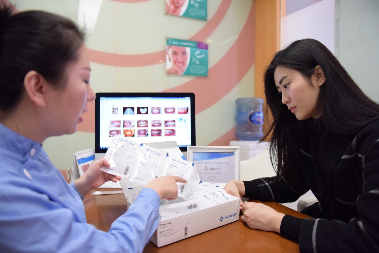 韩院长为她推荐了目前知名隐形正畸材料——隐适美!美国原装进口、全透明牙套、可自由摘戴,欧美明星都佩戴隐适美来矫正牙齿。